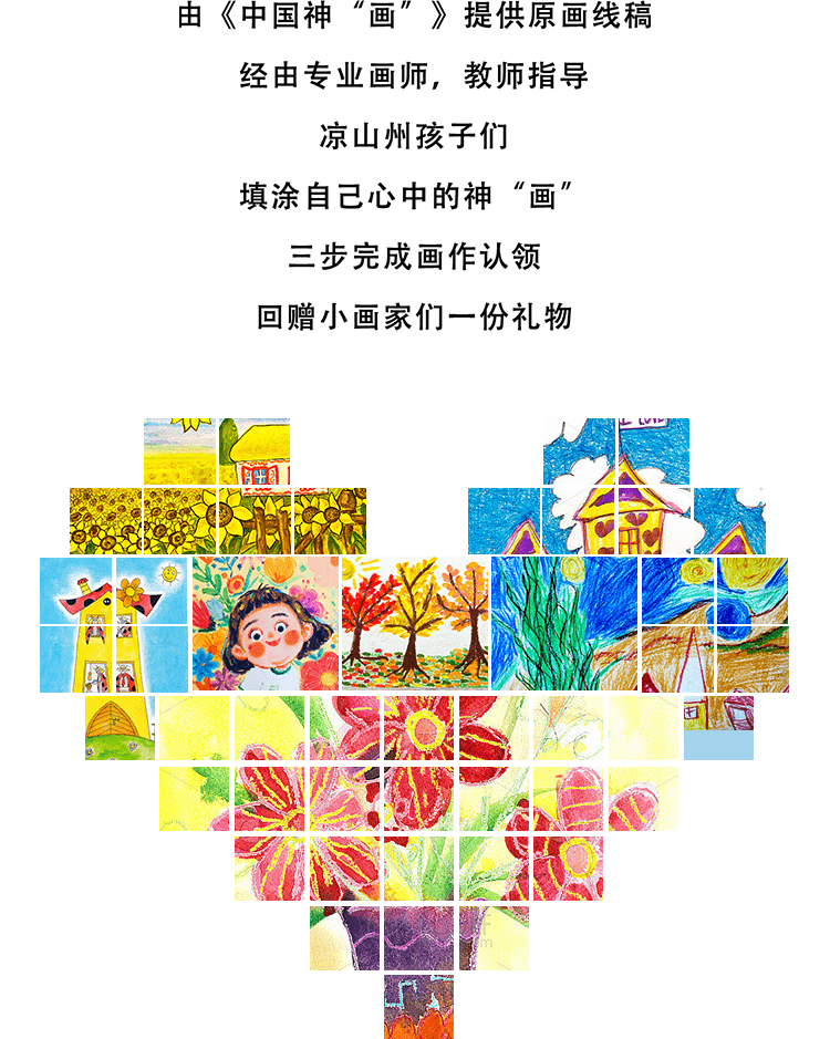在大凉山的孩子们也同样渴望山外的天空,作为对小画家的回馈,请您邮寄任意“礼物”给您认领画作的孩子,我们会在收到您的礼物后,将小画家的画作邮寄给您